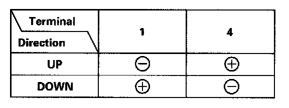 - Connect an analog voltmeter between the No. 3 (+) and No. 5 (-) terminals, and run the window motor at down or up. The voltmeter needle should move back and forth alternately.