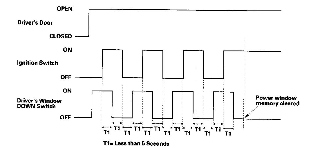 If the window still does not work in AUTO, repeat the procedure several times, paying close attention to the 5 second time limit between steps. If it still does not work, go to B-CAN System Diagnosis Test Mode A. Troubleshooting - B-CAN System Diagnosis Test Mode A