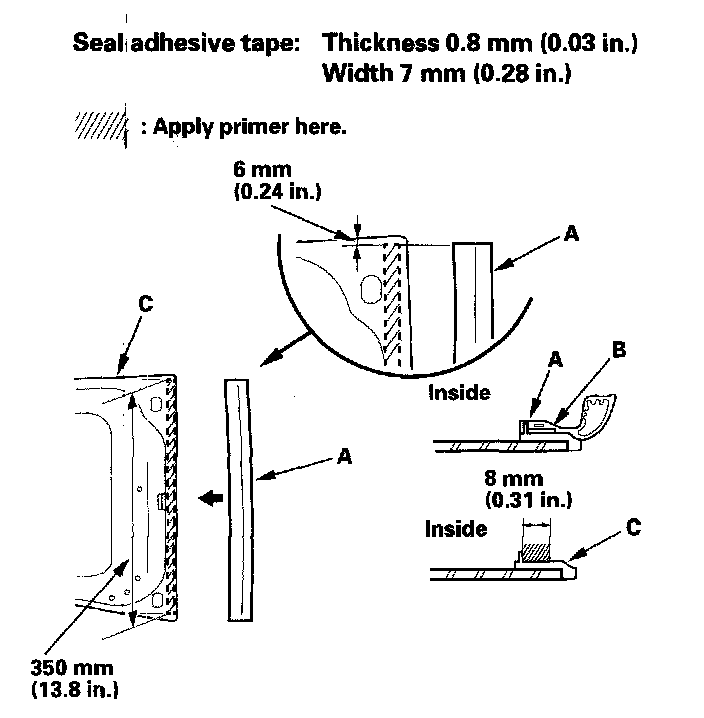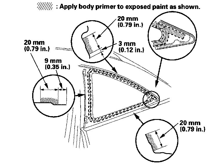 - Never touch the primed surfaces with your hands. If you do, the adhesive may not bond to the quarter glass properly, causing a leak after the quarter glass is installed.