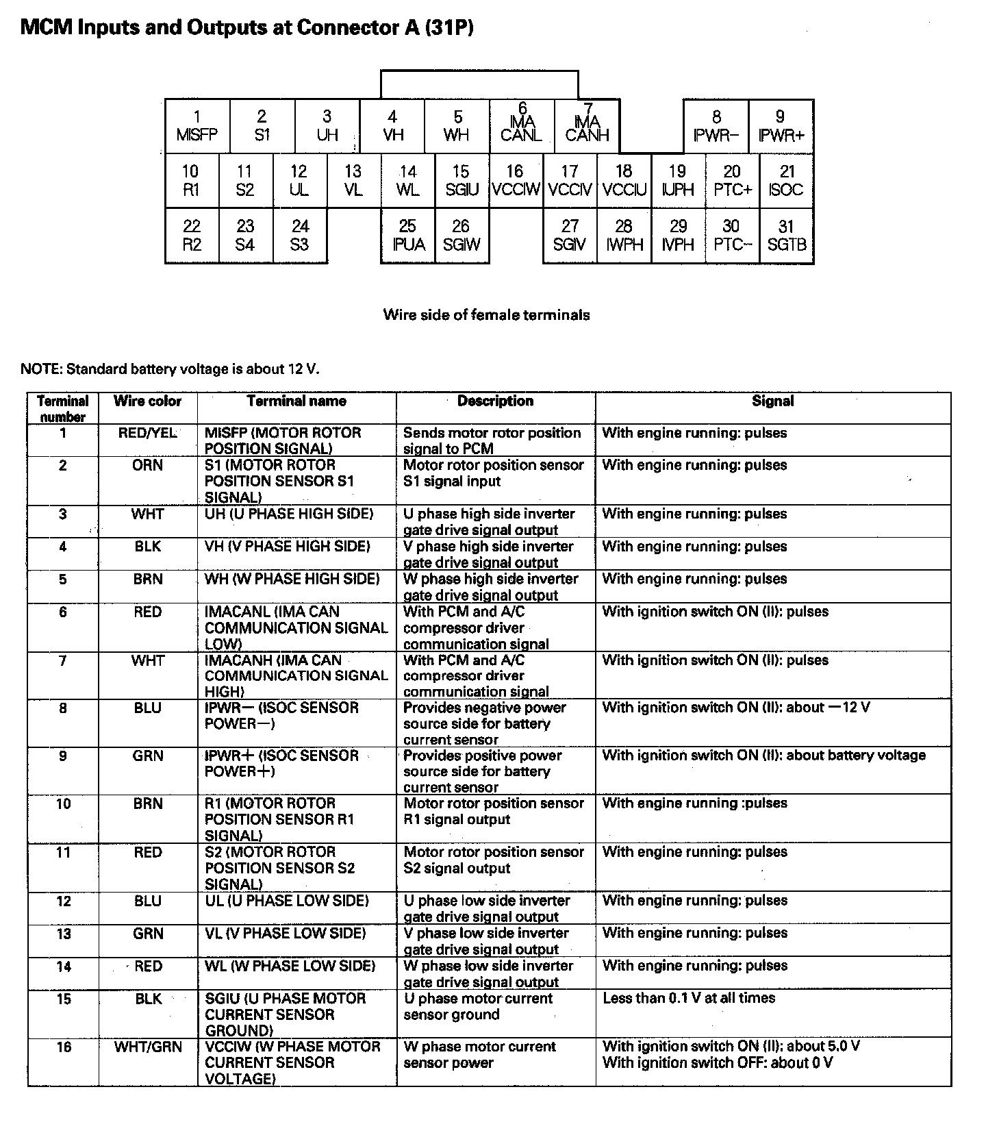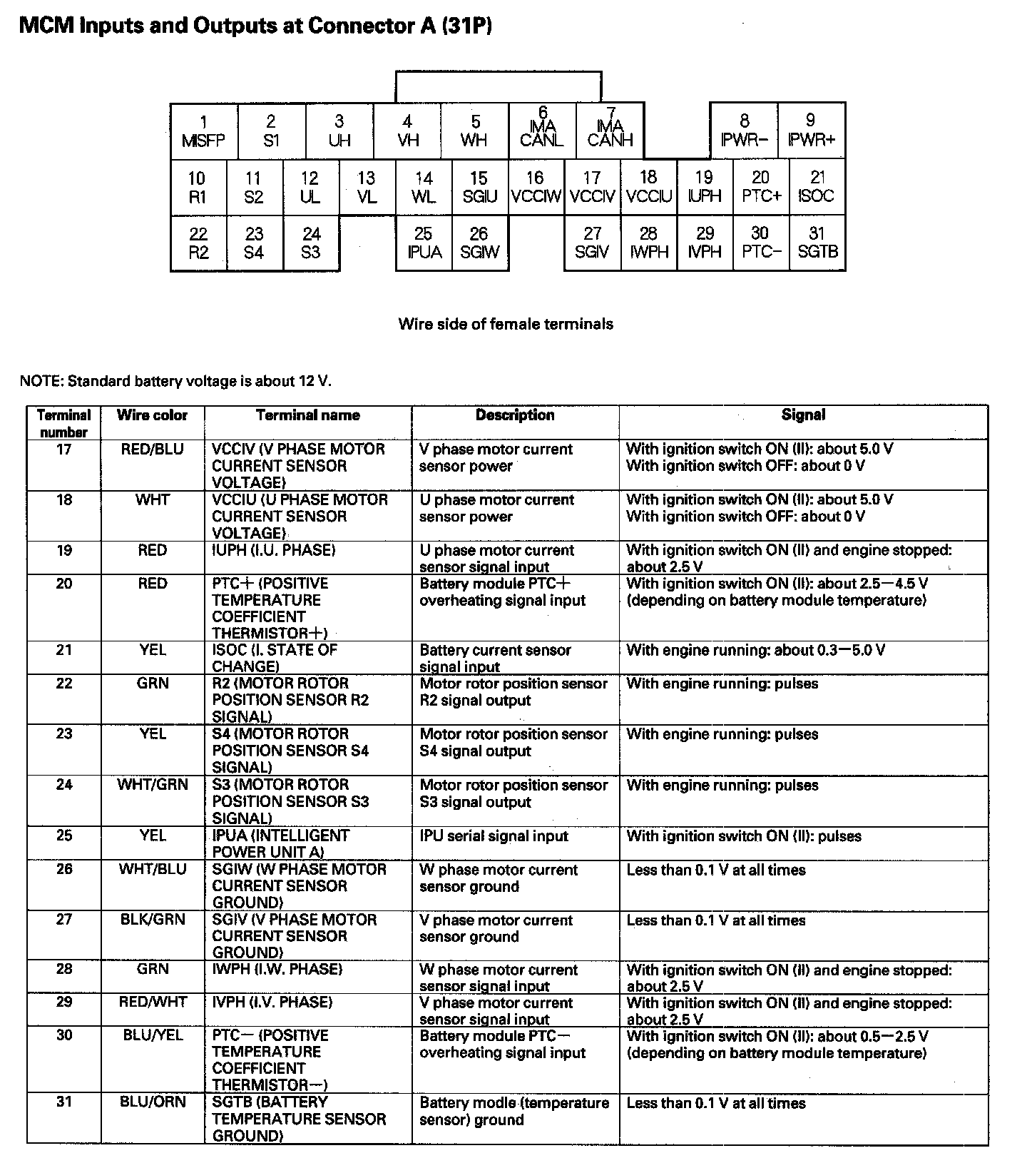 MCM Inputs And Outputs At Connector A (31P) Part 1: