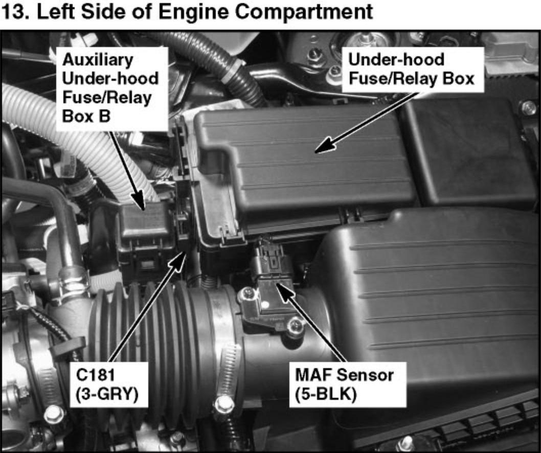 13. Left Side of Engine Compartment: