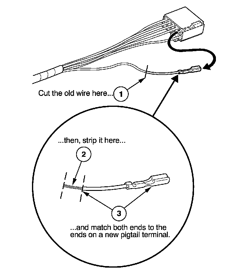 3. Select a pigtail terminal that matches the original wire at both ends (same kind of terminal and same diameter bare wire).