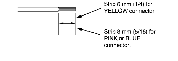 7. If you are using a yellow splice connector, strip about 6 mm (1/4 inch) of insulation off the ends of both wires. If you are using a pink or blue splice connector, strip off about 8 mm (5/16 inch) of insulation.