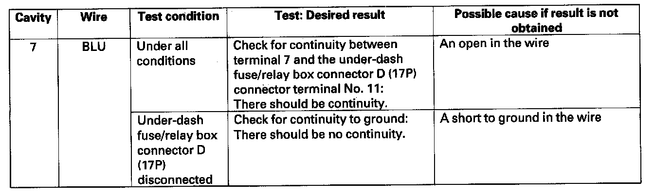 5. Disconnect the 1OP connector from the under-hood fuse/relay box, and make input tests at the connector.