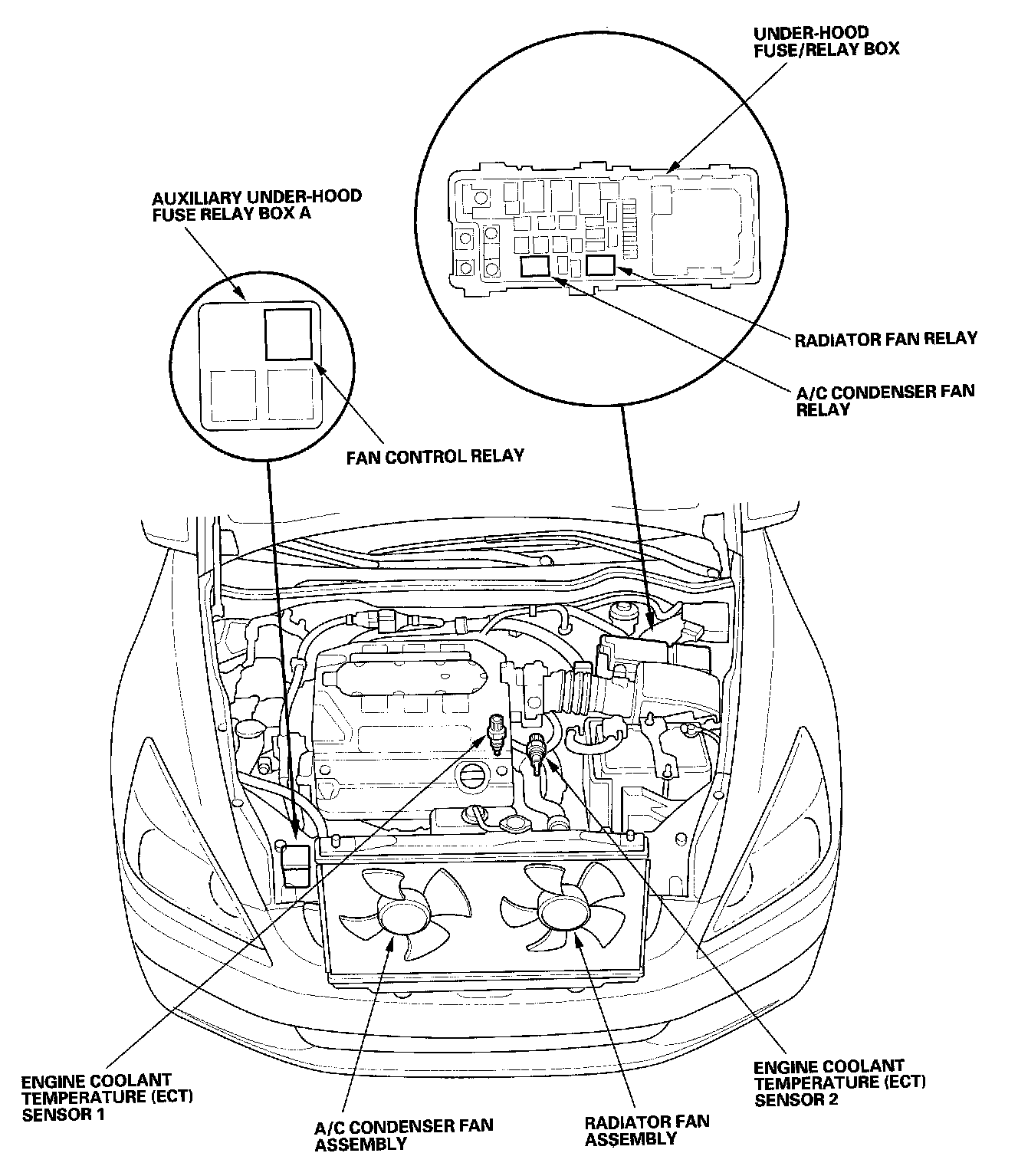 Radiator Cooling Fan Control Module Relay: Locations
