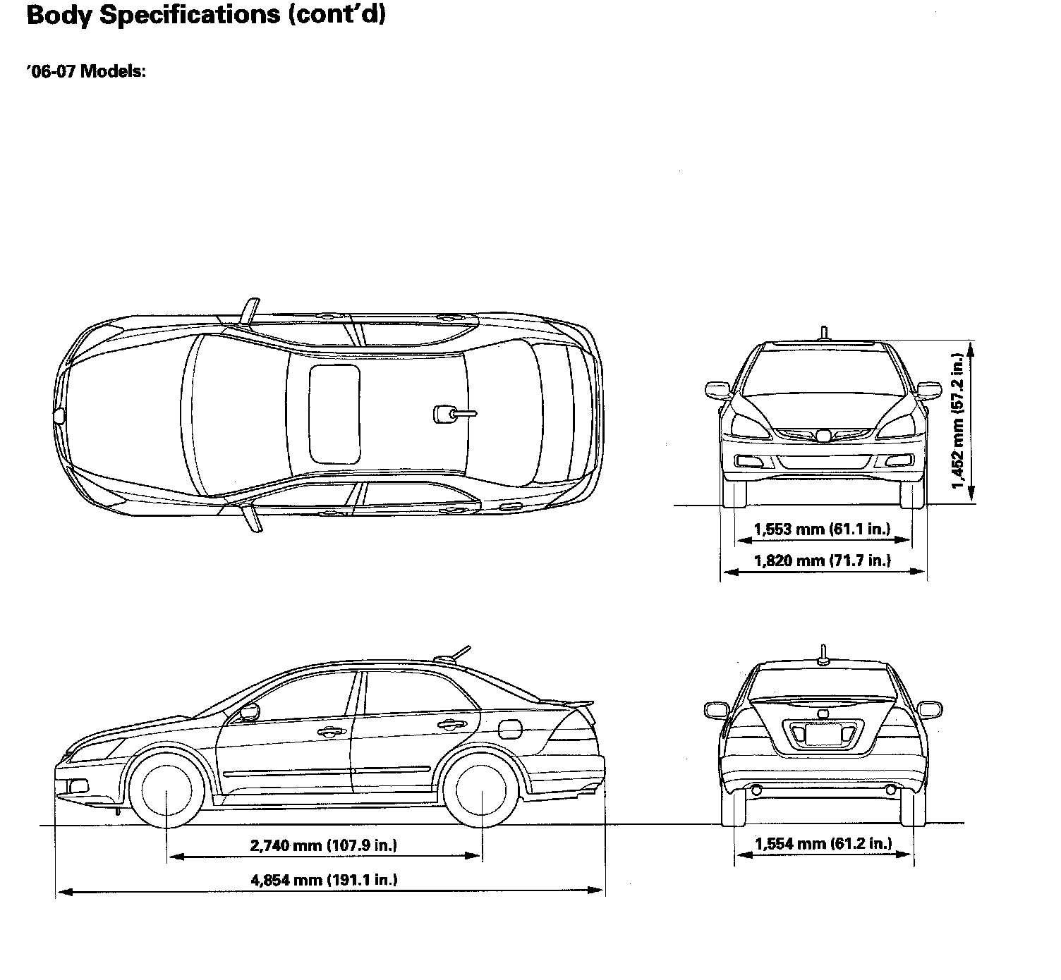Body Specifications ('06-07 Models):