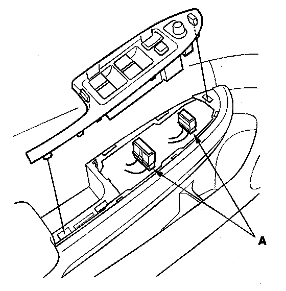 2. Disconnect the power mirror and power window switch connectors (A).
