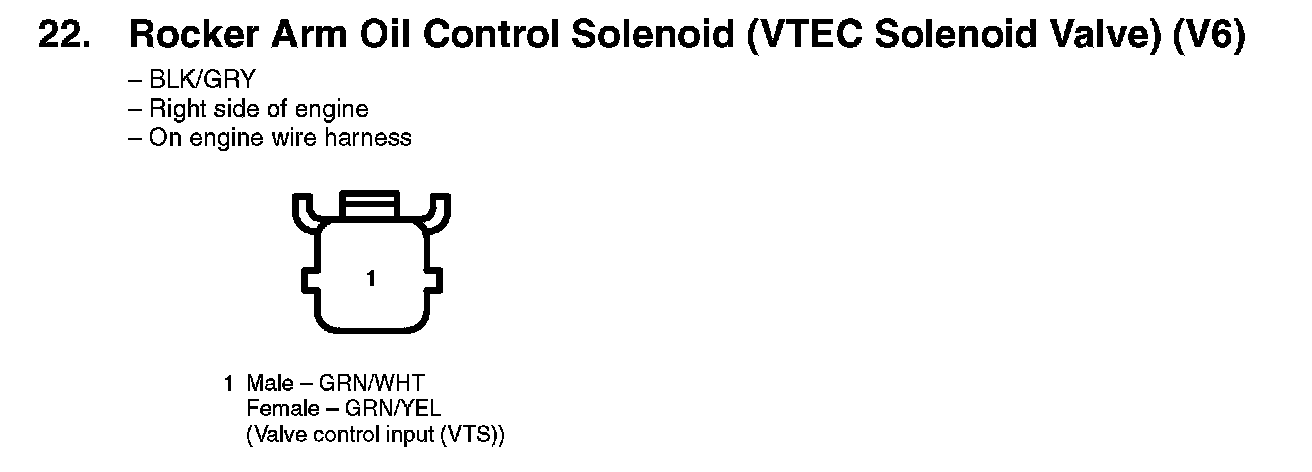 22. Rocker Arm Oil Control Solenoid (VTEC Solenoid Valve) (V6):