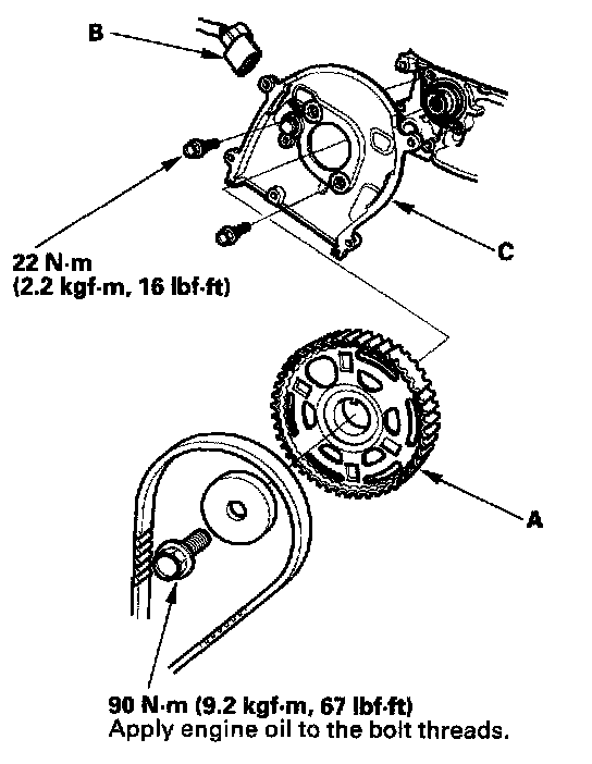 8. Install the parts in the reverse order of removal. To install the timing belt.