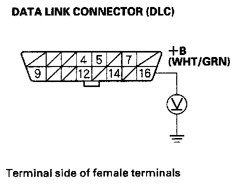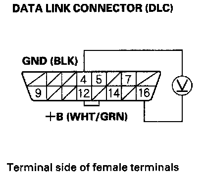 2. Measure voltage between DLC terminals No. 4 and No. 16.