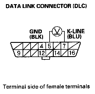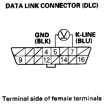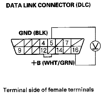 3. Measure voltage between DLC terminals No. 5 and No. 16.