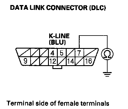 9. Check for continuity between DLC terminal No. 7 and body ground.