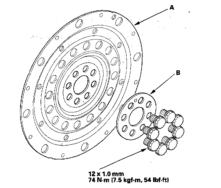 Install the drive plate and washer on the engine crankshaft, and tighten the eight bolts in a crisscross pattern in two or more steps.