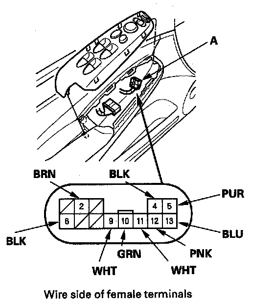 2. Disconnect the 13P connector (A) from the power mirror switch (B).