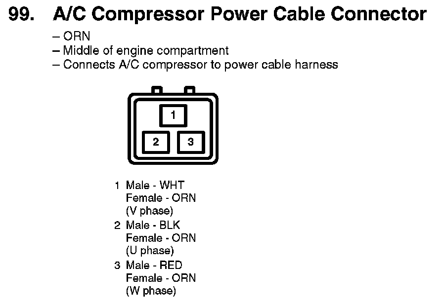 99. A/C Compressor Power Cable Connector: