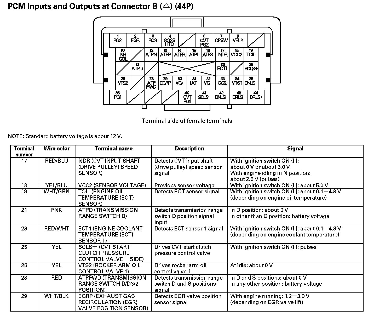 PCM Inputs And Outputs At Connector B (44P) Part 3: