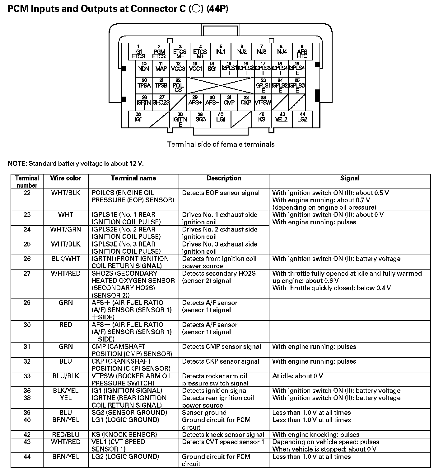 PCM Inputs And Outputs At Connector C (44P) Part 1: