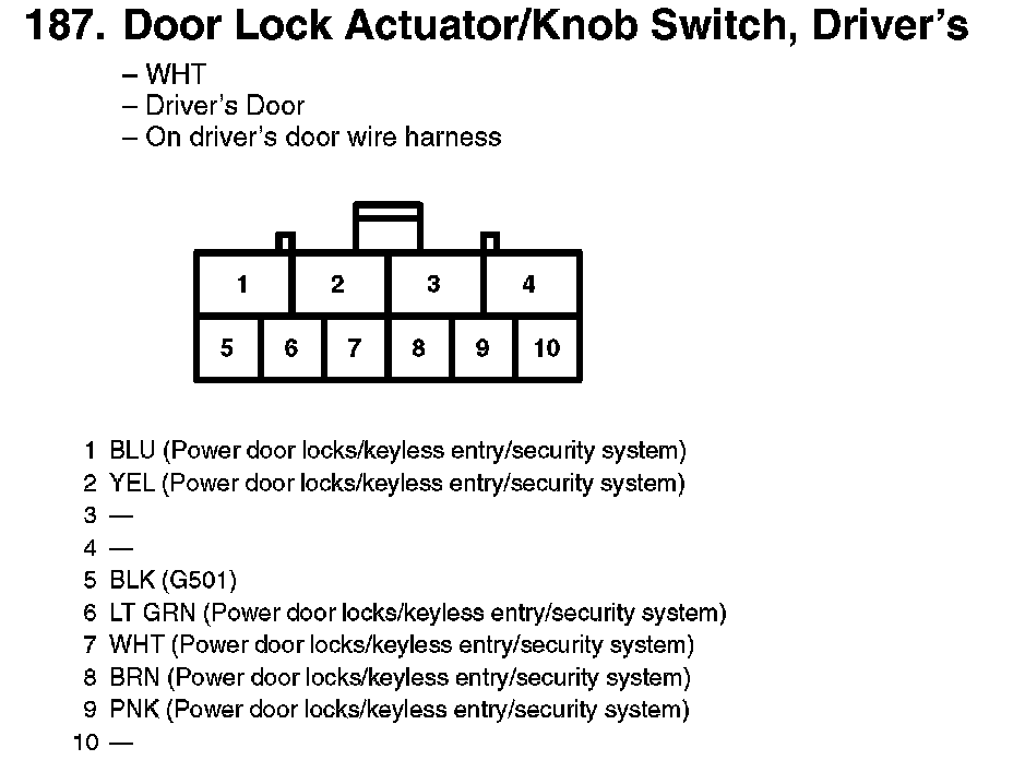 187. Door Lock Actuator/Knob Switch, Driver's: