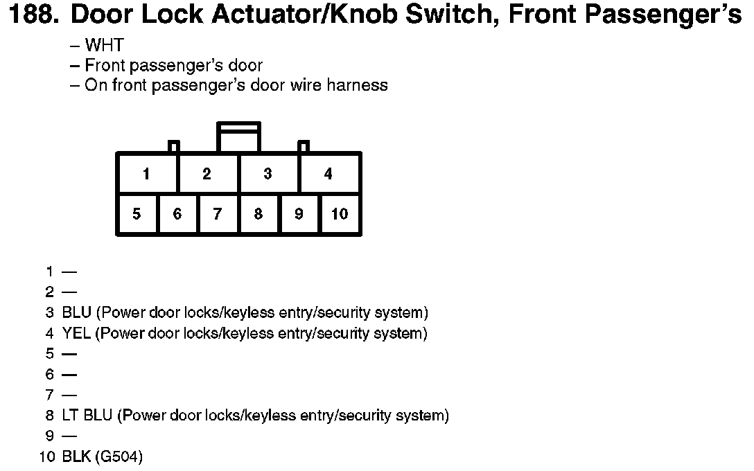 188. Door Lock Actuator/Knob Switch, Front Passenger's: