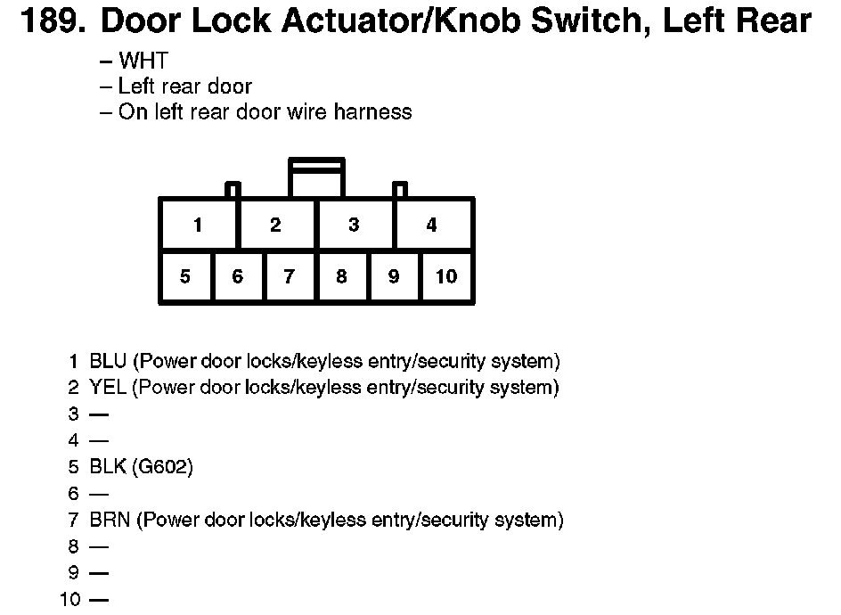 189. Door Lock Actuator/knob Switch, Left Rear: