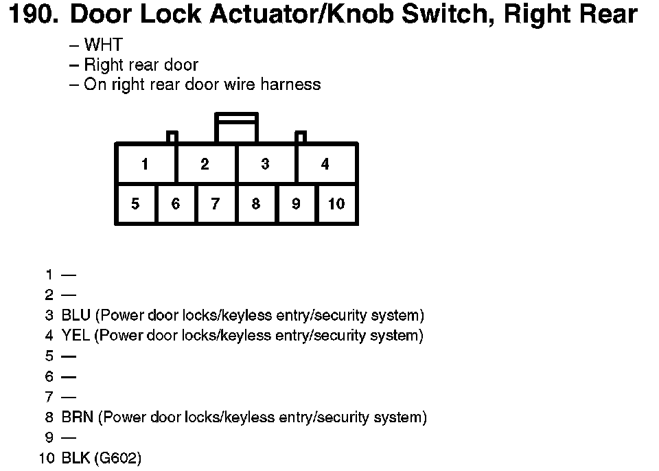 190. Door Lock Actuator/Knob Switch, Right Rear: