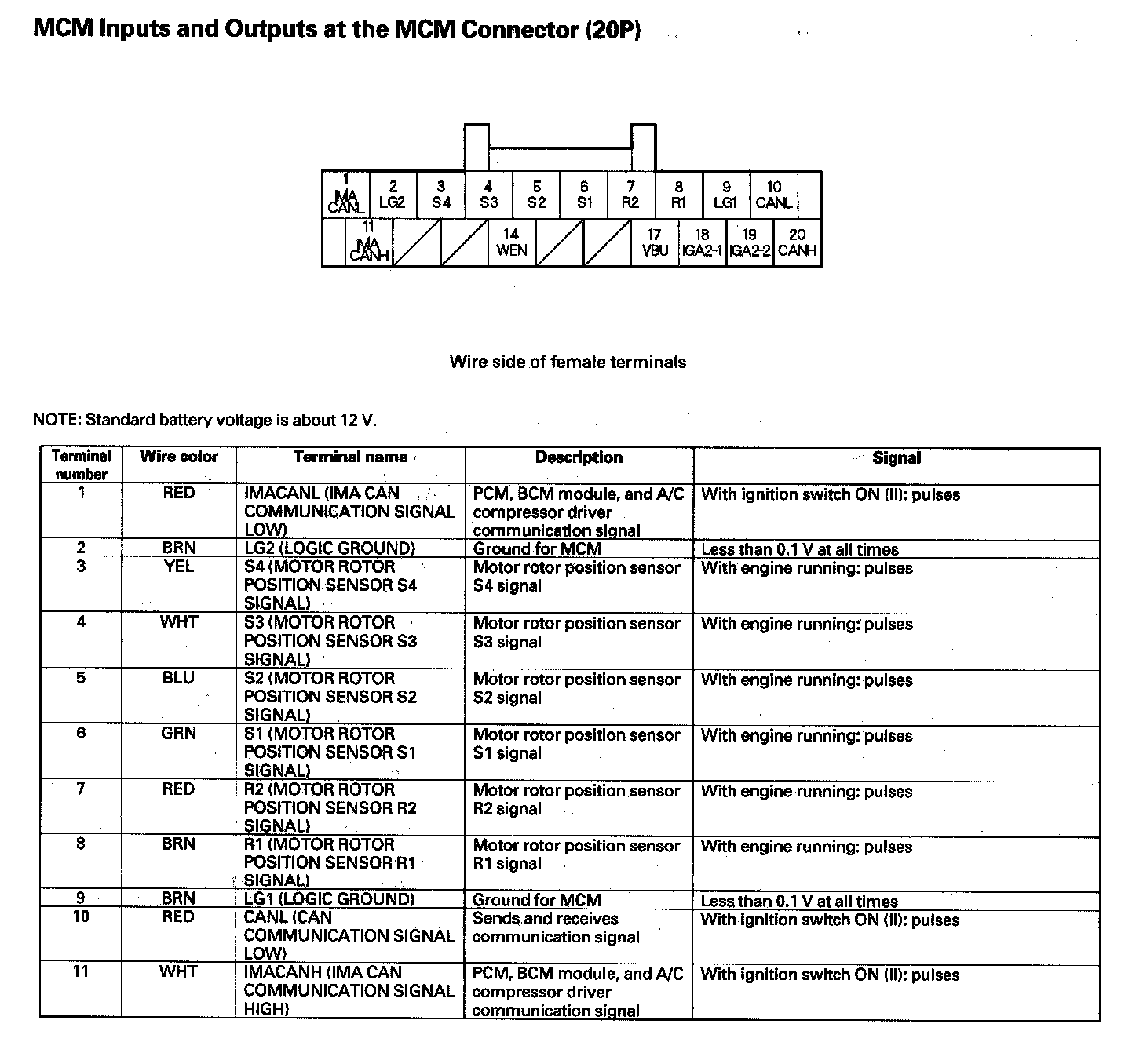 MCM Inputs And Outputs At The MCM Connector (20P) Part 1: