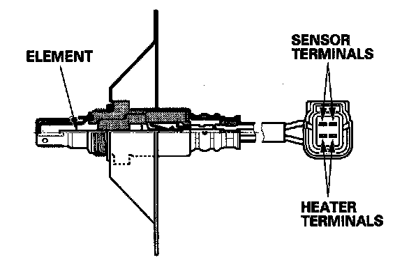 The secondary HO2S detects the oxygen content in the exhaust gas downstream of the warm up three way catalytic converter (WU-TWC), and sends signals to the PCM which varies the duration of fuel injection accordingly. To stabilize its output, the sensor has an internal heater. The PCM compares the HO2S output with the A/F sensor output to determine catalyst efficiency. The secondary HO2S is located on the WU-TWC.
