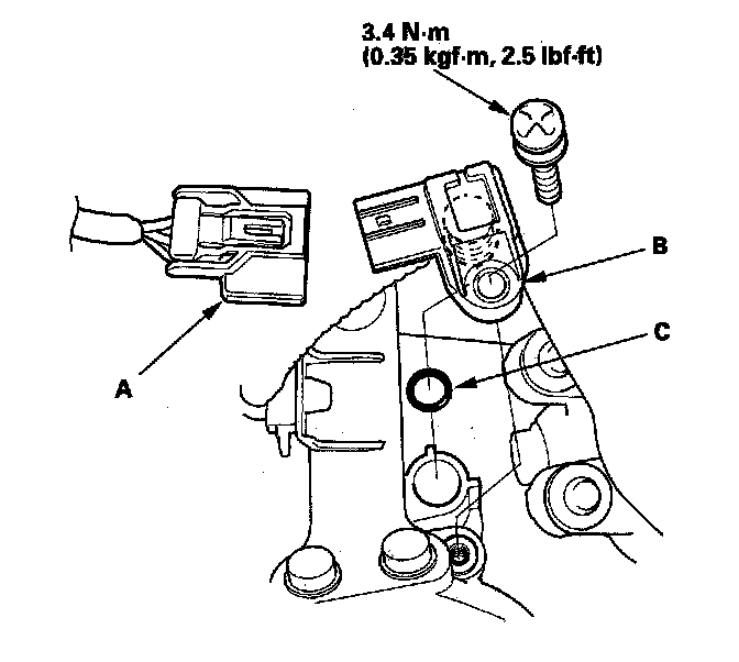 Install the parts in the reverse order of removal with a new O-ring (C).
