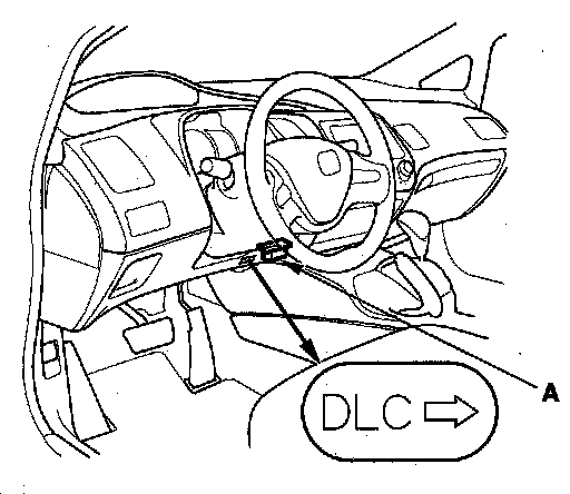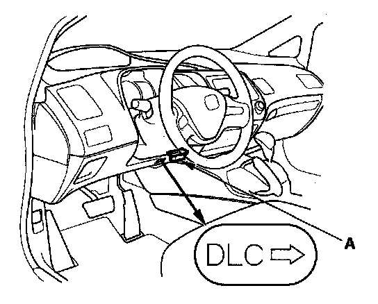 2. Connect the HDS to the data link connector (DLC) (A) located under the driver's side of the dashboard.