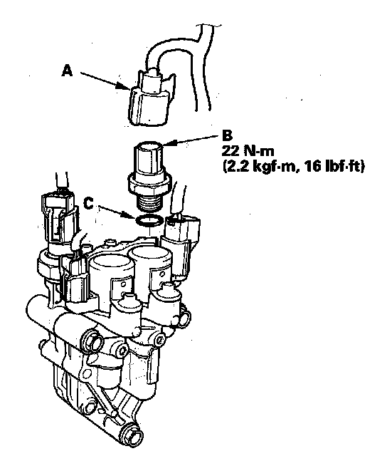 3. Install the parts in the reverse order of removal with a new O-ring (C).