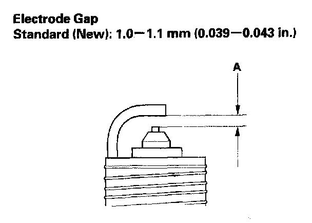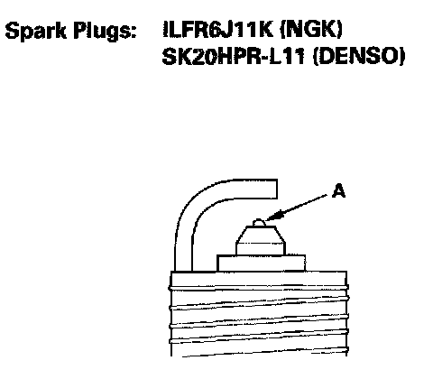 3. Do not adjust the gap of iridium tip plugs (A); replace the spark plug if the gap is out of specification.