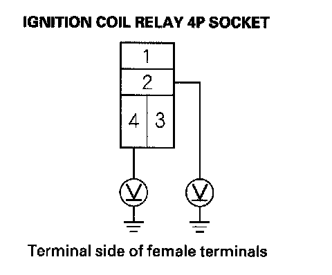 4. Measure the voltage between ignition coil relay 4P socket terminal No.2 and body ground, then terminal No.4 and body ground.