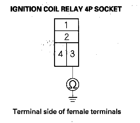 12. Check for continuity between ignition coil relay 4P socket terminal No.3 and body ground.