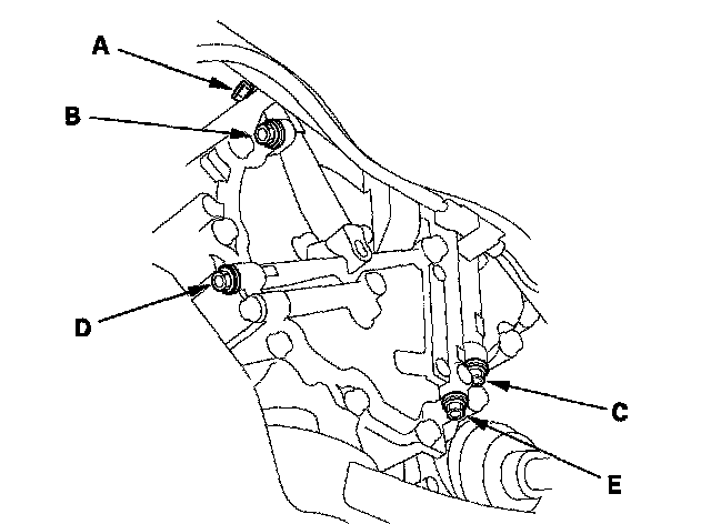 10. Connect the A/T high pressure gauge (07AAJ-PLYA100) to the drive pulley pressure inspection port (D) and to the driven pulley pressure inspection port (E).