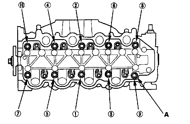 Tighten the cylinder head bolts in sequence 29 Nm (3.0 kgf-m, 22 ft. lbs.)
