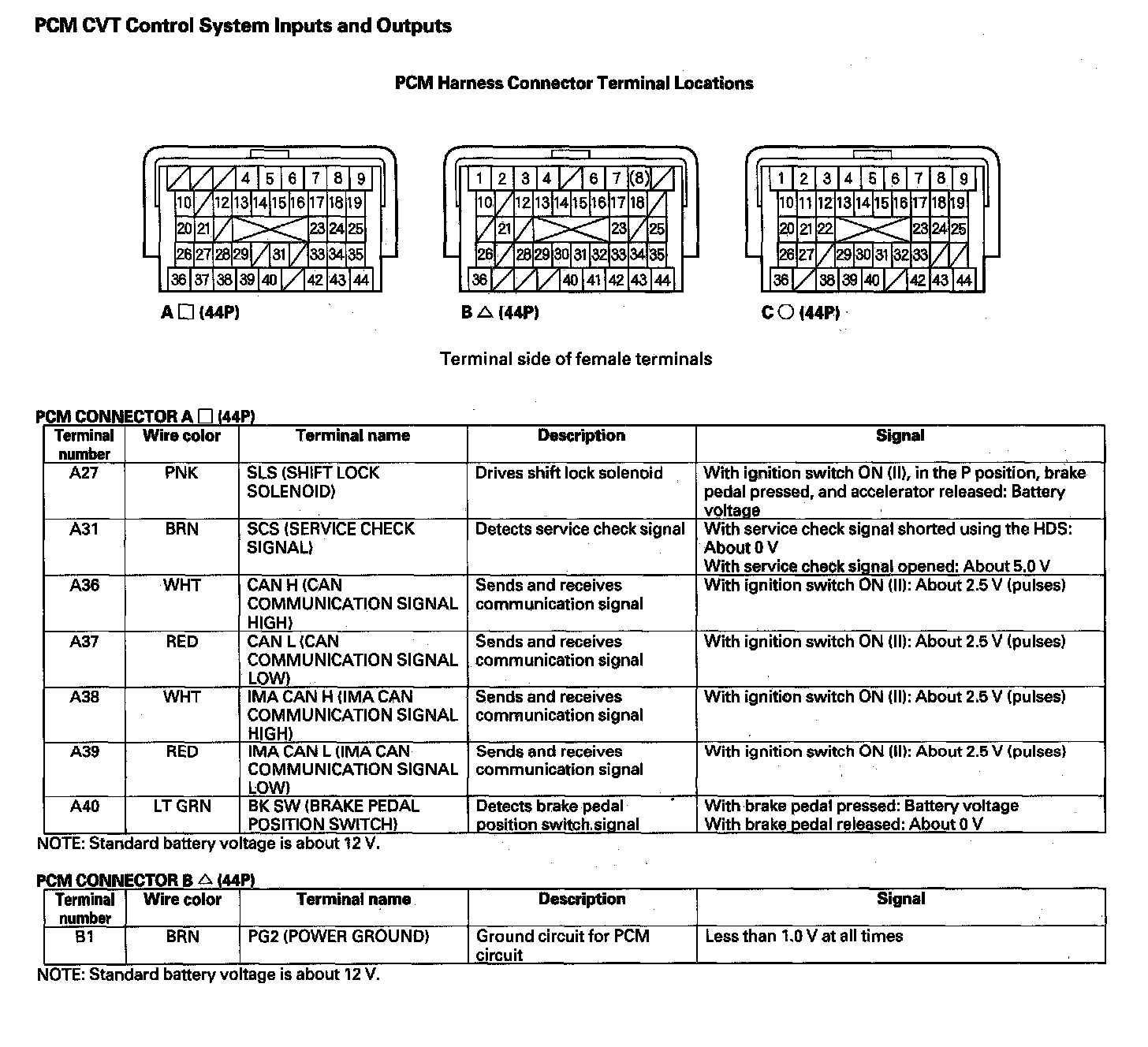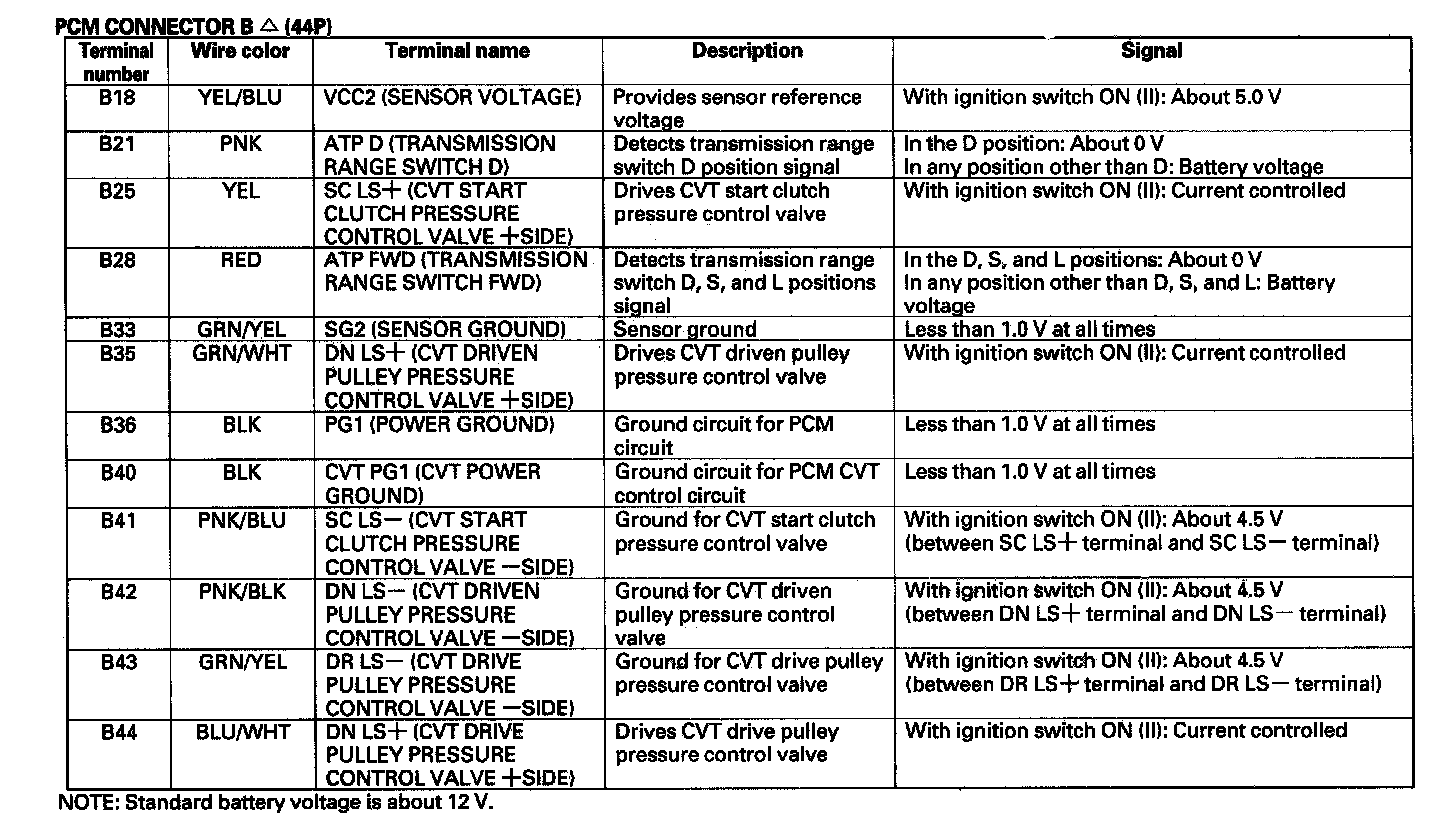 PCM CVT Control System Inputs and Outputs (Part 1):