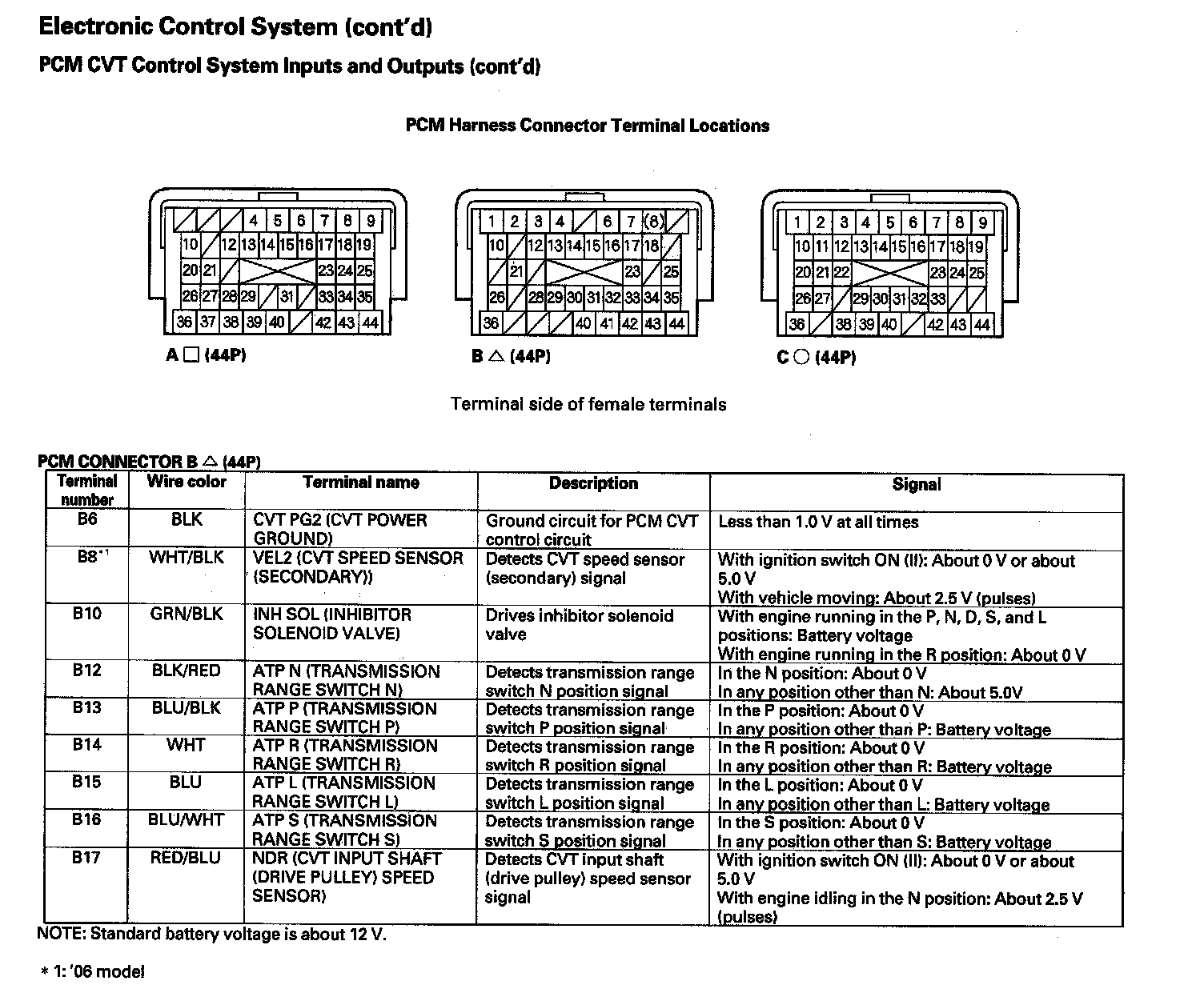 PCM CVT Control System Inputs and Outputs (Part 4):