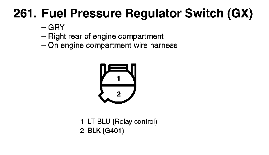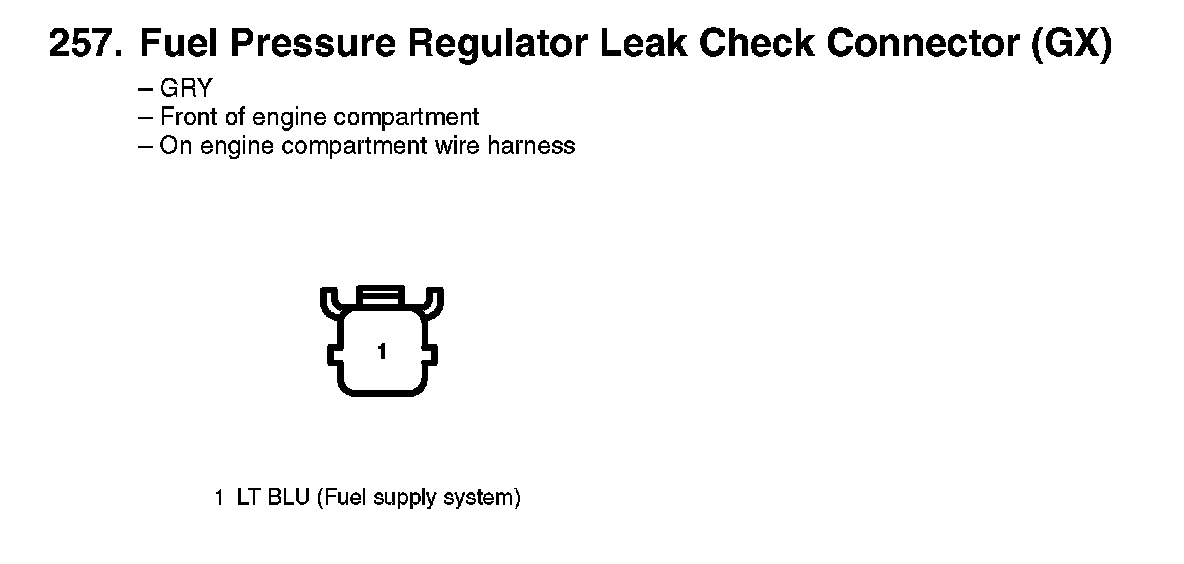 257. Fuel Pressure Regulator Leak Check Connector (GX):