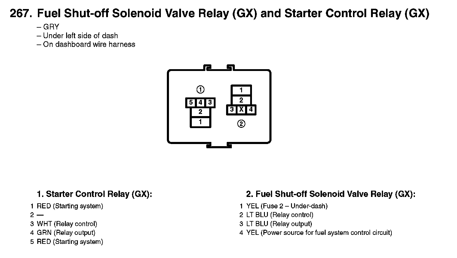 267. Fuel Shut-off Solenoid Valve Relay (GX) And Starter Control Relay (GX):