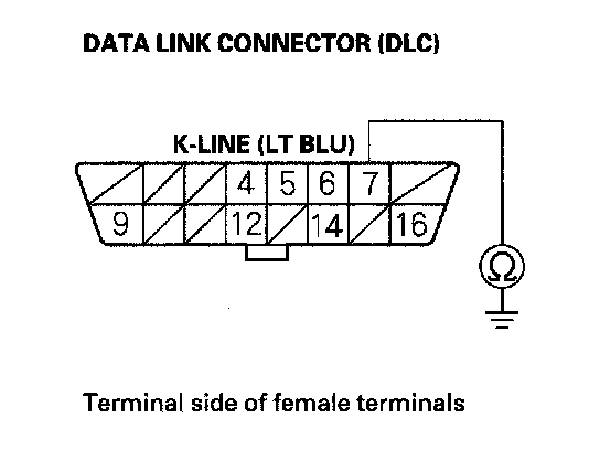 15. Check for continuity between DLC terminal No. 7 and body ground.