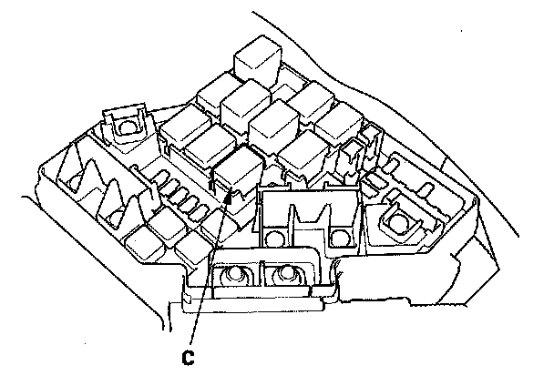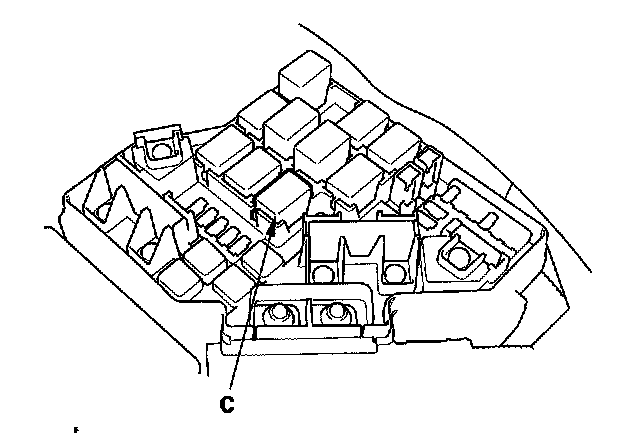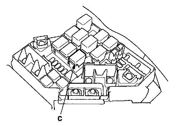 38. Remove PGM-FI main relay 1 (C) from the under- hood fuse/relay box.