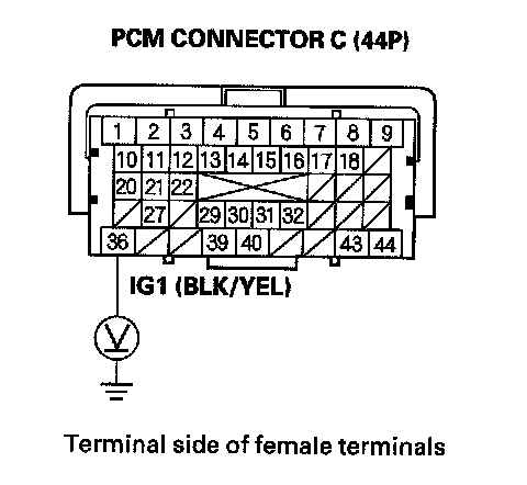 54. Measure voltage between PCM connector terminal C36 and body ground.