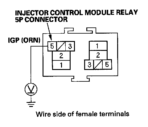 4. Connect injector control module relay 5P connector terminal No. 3 to body ground with a jumper wire.