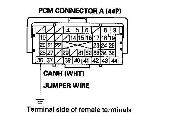9. Connect PCM connector terminal A36 to body ground with a jumper wire.