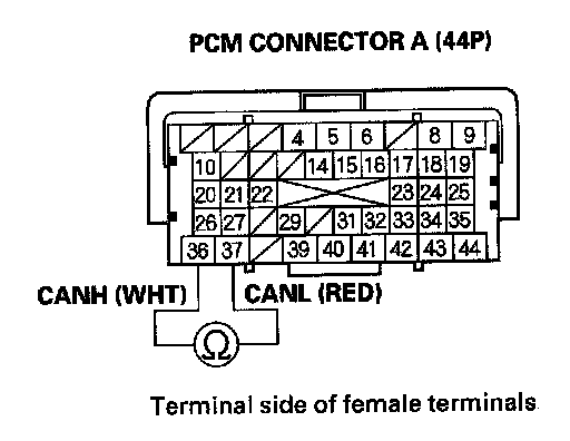 4. Measure resistance between PCM connector terminals A36 and A37.
