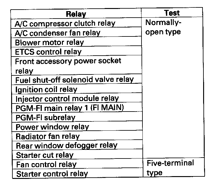 Use this chart to identify the type of relay, then do the test listed for it.