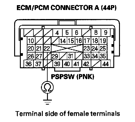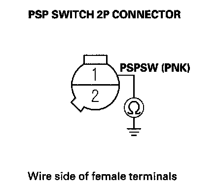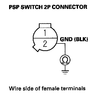 13. Check for continuity between PSP switch 2P connector terminal No.1 and body ground.
