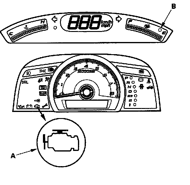 1. Start the engine and check the MIL (A) or the low fuel indicator (B).