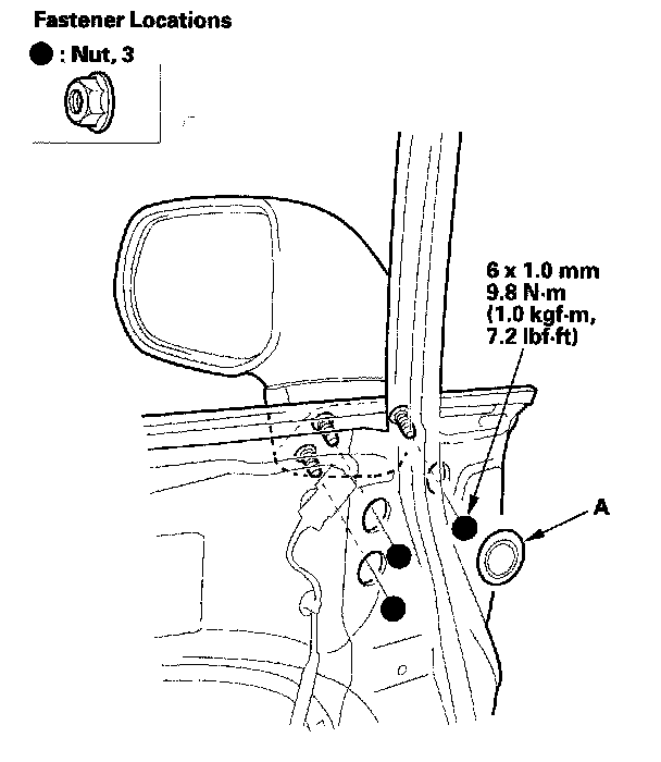 4. While holding the mirror, remove the nuts securing the mirror.