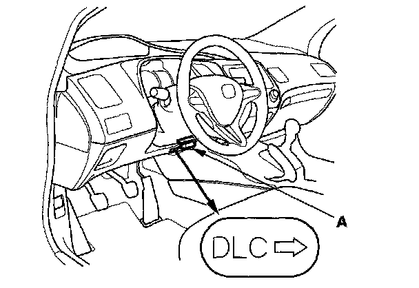 2. With the ignition switch OFF, connect the HDS to the data link connector (DLC) (A) under the driver's side of the dashboard.